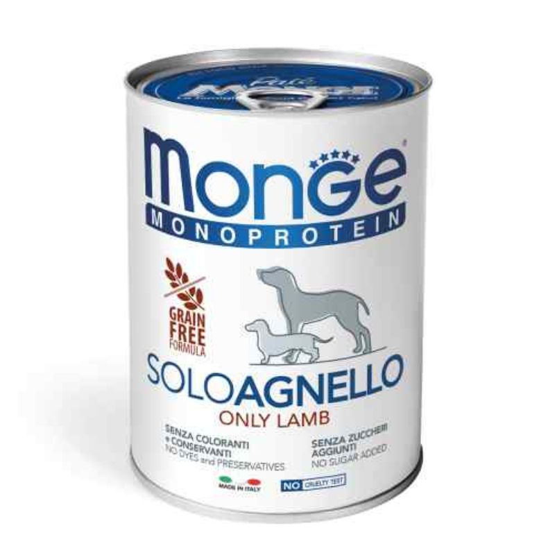 Monge Canine Adult Cordero paté formulado con una fuente única de proteína animal, cordero seleccionado de la más alta calidad. Productos 100% italianos y muy sabrosos. Alimento equilibrado que utiliza un complejo de vitaminas A-E-D3 y micronutrientes esenciales. Natural, sin colorantes, conservantes ni azúcares añadidos.